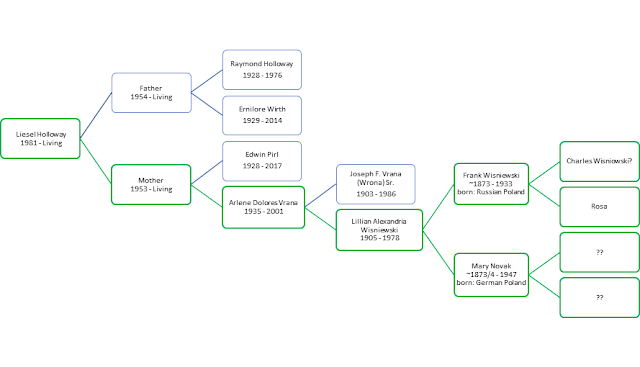 Welcome to Part 2 in my story of researching my Polish great-great-grandparents, Frank Wisniewski and Mary Novak! If you haven't read the first post, start there for a little more background. Below is a basic pedigree of this family line for reference: